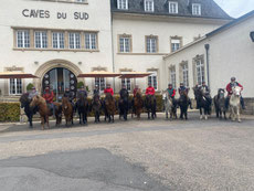 Les couleurs automnales et la lumière particulière de ce mois d’octobre font de cette balade toujours une belle sortie. Comme d’habitude nos chevaux étaient parfaits : volontaires dans les montées, prudents dans les descentes et patients pendant la pause déjeuner. Ils nous ont permis de déguster tranquillement le vin blanc de Moselle aux Caves du sud à Remerschen (Luxembourg).