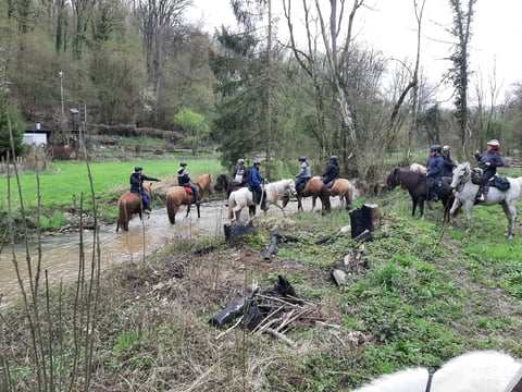 - 6 octobre Balade de Christophe à Puttelange aux Lacs : 27 cavaliers de 7 à 74 ans pour cette balade autour des étangs qui font partie de la ligne Maginot aquatique, aujourd’hui lieu de villégiature de nos voisins Allemands. Après la vingtaine de kilomètres, chacun à son rythme, un camion pizza nous attend et régale tout le monde.